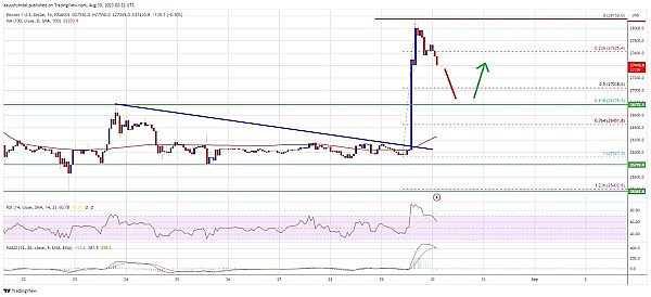 稳步上涨,价格甚至突破了27,500美元的阻力区。最后测试了28,000美元的阻力位。在 28,150 美元附近形成高点,目前价格正在调整涨幅。小幅下跌至 27,800 美元以下。