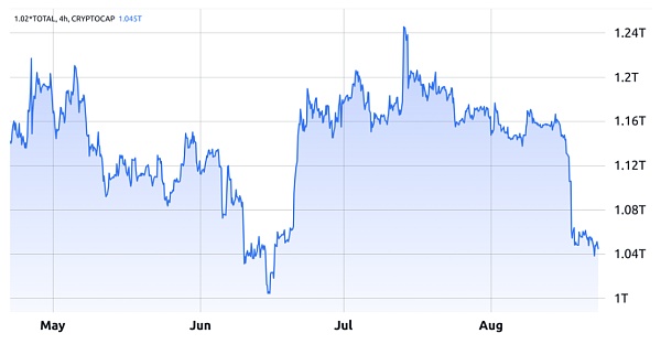 加密货币市场近期经历了明显的低迷,8月14日至8月23日期间总市值下跌10%,达到两个多月来的最低点1.04万亿美元。 这一走势引发了期货合约的大规模清算,这是自 2022 年 11 月 FTX 崩盘以来的最大清算。