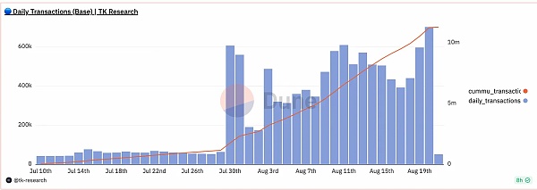 Friend tech 是吸引用户使用 Base 的主要 dapp。随着更多的协议推出(如 Aave 和 Uniswap)和生态系统的扩大,Base 在实质上可能会继续增长。当前 7 天的年化收入约为 4200 万美元,这是 Coinbase 年度收入的一个重要组成部分。