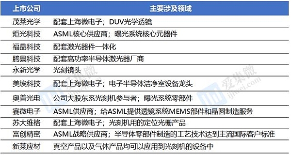 在部分光刻机核心系统方面,国内以国科精密、华卓精科为代表的新锐力量也完成了部分项目的论证。目前光刻机曝光系统全球只有蔡司和尼康能够完成国科精密作为国家科技重大专项02专项支持的唯一高端光学技术研发单位,正在承担NA0.82、NA1.35等多种类型高端IC制造投影光刻机曝光光学系统的技术研发及产业化推进工作;华卓精科是上海微电子唯一的光刻机工件台供应商,作为世界上第二家掌握双工件台核心技术的公司,华卓精科成功推出了第一台满足65nm光刻机需求的双工件台样机,打破了ASML公司在工件台上的技术垄断。