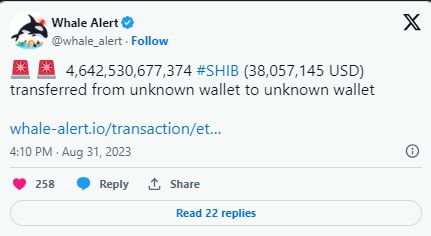 Shiba Inu:神秘的鲸鱼移动了价值3800万美元的4.6万亿SHIB 代币