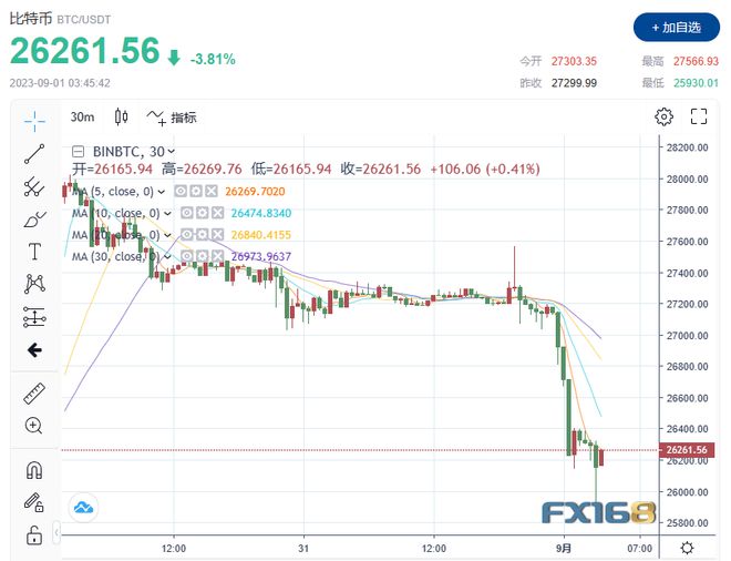 (比特币30分钟走势图,来源:FX168)