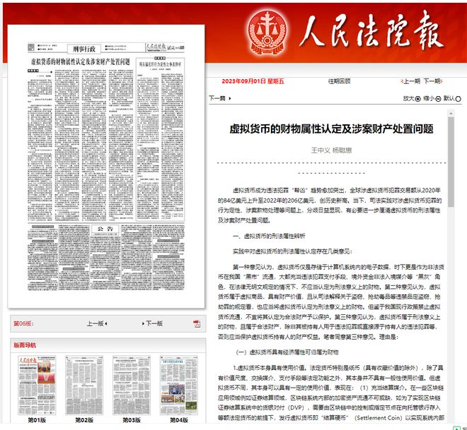 《虚拟货币的财物属性认定及涉案财产处置问题》,现行法律政策并未将比特币定性为非法物品,称虚拟货币具有经济属性可归属为财物,因此中国相关主体持有的虚拟货币,仍属于合法财产,受到法律保护。文中建议,虚拟货币涉案款物不可一律予以没收或者发还。