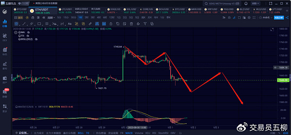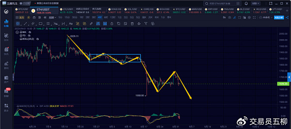 如果下周以太能够在1500撑住,那么后续要么是走一笔日线级别的反弹,要么是构建第二个4h中枢继续下跌。所以具体还需要看情况去讨论。