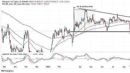 8 月 31 日星期四,以太坊的反弹未能保持势头,在强劲的抛售压力下,以太坊价格跌破 1,650 美元。由于加密货币市场出现更广泛的抛售,ETH 的交易价格在过去 24 小时内下跌了 3.21%。