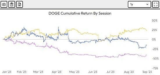 今年迄今,狗狗币目前下跌 5.6%。Velo Data 的数据指出,DOGE 在欧洲交易时段(紫色)的累积投资回报率在 2023 年的大部分时间里一直处于负数区域。事实上,该状况仅在下半年恶化。