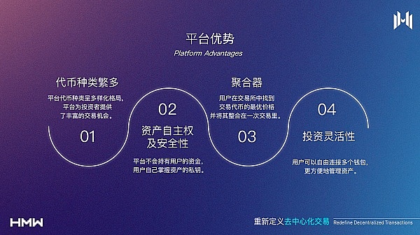 4)多元平台应用: HMW通证在DEswap的生态系统中具有广泛的应用,包括其他活动、解锁高级功能、参与独家通证销售等。这使得通证在平台内部具备了多元的实用价值。