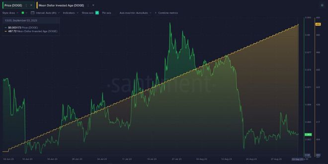 狗狗币的平均美元投资年龄 [MDIA] 自 2023 年 6 月以来一直呈上升趋势。该指标衡量投资于资产的美元的平均年龄。上升趋势通常受到欢迎,因为它们表明投资正在进入休眠状态,指向持有趋势。