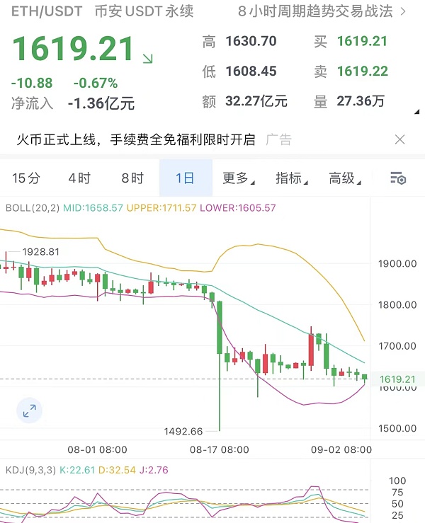 这几天比特币/以太坊一直在低位震荡,整体波幅较小导致空间也不大,白盘一波插针比特币最低点来到25530附近,以太最低点来到1608附近,也是多单最好的进场位置。