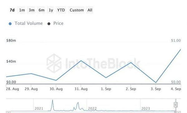 根据 IntoTheBlock 的数据,Shiba Inu 的交易量每日增长 2187%,令人瞩目。该网络的总交易额达到 6722 万美元,较之前的低点 294 万美元大幅上升。