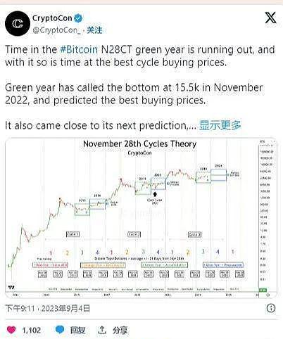 虽然比特币的价格有可能出现波动,但其他数据集显示,比特币的积累期即将结束。根据 11 月 28 日周期理论,比特币的积累阶段即将在几个月内结束。