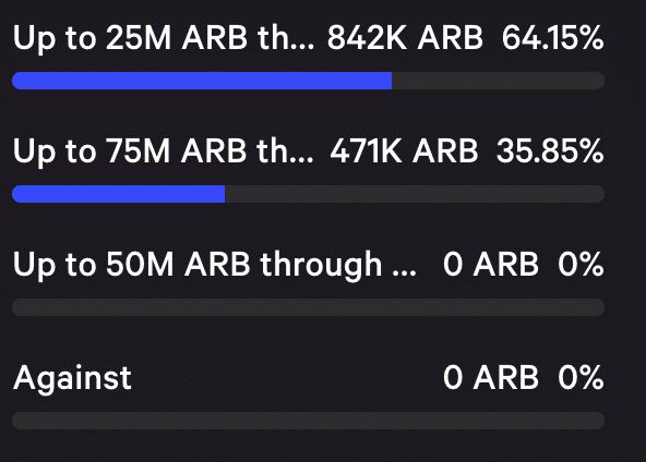 为了应对这些挑战,Arbitrum 治理结构采取了积极措施,为协议注入新的活力。激励工作组最近提出了一项针对 Arbitrum DAO 的全面提案,概述了一项一次性计划,旨在向活跃的 Arbitrum 协议分发最多 7500 万个 ARB 代币。