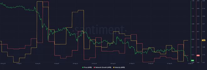 考虑到 ARB 的市场价格为 0.836 美元,鲸鱼兴趣下降的影响是显而易见的。此外,过去一个月网络增长率和交易速度均出现下降,这表明 ARB 面临潜在挑战。