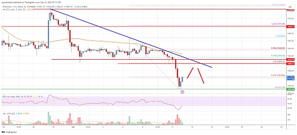 以太坊价格兑美元跌破 1,600 美元。如果 ETH/USD 未能恢复至 1,600 美元上方,则仍面临进一步下行的风险。