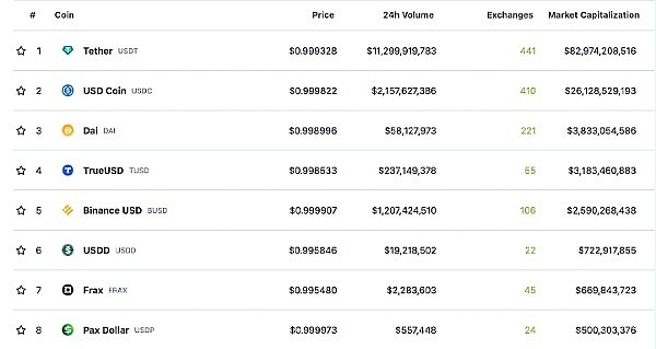就资本总额而言,领先市场的是著名的稳定币,例如 Tether (USDT)、USDC (USDC)、DAI (DAI)、Trueusd (TUSD) 和 Binance USD (BUSD)。稳定币旨在通过将其市场价值与法定货币或大宗商品等外部参考挂钩来实现价格稳定。这些数字资产将加密货币的元素与传统的支付和价值存储方法相结合,提供了某种形式的价格可靠性。