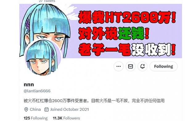 李驰明的朋友nnn在今年3月份就遭遇了火币平台的“插针”行为。火币的平台币HT在今年3月10日凌晨5点左右,从4.76美金砸到0.3美金,又迅速拉回复位,整个过程不到3分钟,彼时很多客户还在睡梦中,根本没有操作仓位的时间和机会,纷纷被爆仓。nnn因为此次“插针”穿仓损失了2600万美金。