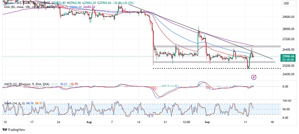 比特币( BTC ) 在最近下跌并测试了 25,000 美元的支撑位后触及了新的生命线。尽管市场因缺乏高流动性而处于动荡状态,但这次触及主要支撑位挑战了投资者的“观望”态度,导致价格升至 26,400 美元以上,迫使一些人转向最大的加密货币。那么,BTC 的下一步是什么?上涨趋势会持续吗?