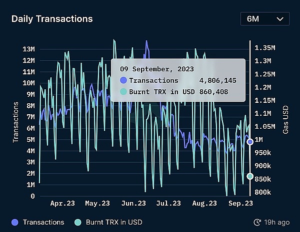 Nansen最新数据显示,波场TRON每天处理约480万笔交易。