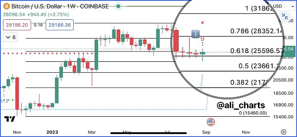截至撰写本文时,比特币交易价格为 26,136.30 美元,过去 7 天价格上涨了 1.64%。此外,该代币的日交易量下降了 24.19%,目前为 148.3 亿美元。
