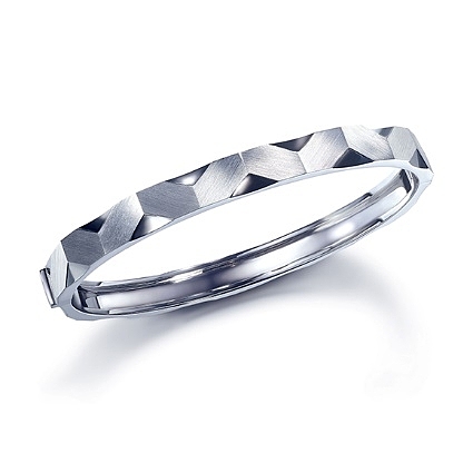 同款手镯及戒指均来自六福珠宝Hexicon,延续简洁多变的六角形为设计理念,融入立体几何元素,衬托摩登气质,演绎经典的时尚美学。