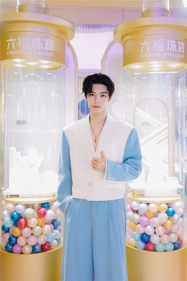 (图:侯明昊佩戴铂金玄酷系列及Hexicon首饰解锁蓝白配色个性穿搭)