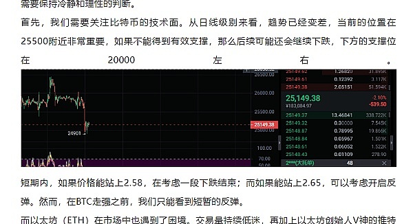 比特币方面,最近的走势并不乐观。如昨天的文章所述,25000美元是一个非常重要的支撑位,如果不能有效地得到支撑,比特币可能会继续下探至20000美元。当前市场对比特币的需求仍然很高,但是交易量并没有出现明显增加的迹象。尽管山寨币在前几天轮番拉升,但并没有对整个市场产生带动作用,这是因为这些拉升行情主要是由做市团队和游资故意制造的,并没有引入大量增量资金,因此一旦拉升结束后,散户很容易陷入被套的境地,整个市场也没有出现实质性的好转。