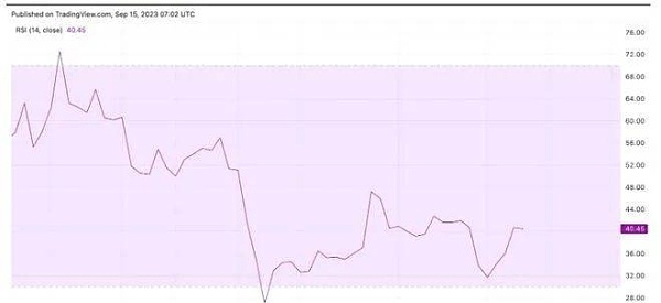 自从官方法庭文件显示DOGE不在 FTX 待售资产清单中以来,狗狗币多头势头强劲。目前的相对强弱指数(RSI)趋势进一步证实了这一说法。下图显示,自9月11日以来,DOGE日线RSI一直处于上升趋势,并于9月15日达到40.45。
