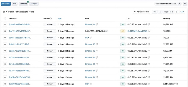 更耐人寻味的是,这并不是一起孤立事件。过去几天,已有3个地址从币安提取了大量TRB,总计566,920 TRB,相当于1530万美元。这三个地址目前占据 TRB 总供应量 23% 的份额,引发了人们对 TRB 所有权潜在集中化的担忧。