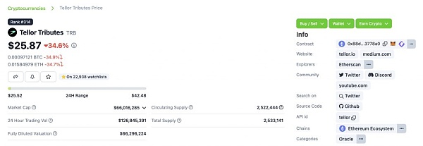 TRB价格在神秘鲸鱼驱动的抛售中暴跌 34%