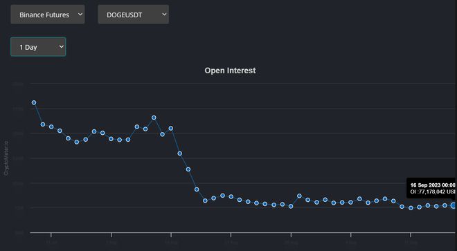 DOGE 的未平仓利率在过去四个星期内波动。狗狗币稳定在 0.060 美元,但抛售压力依然存在