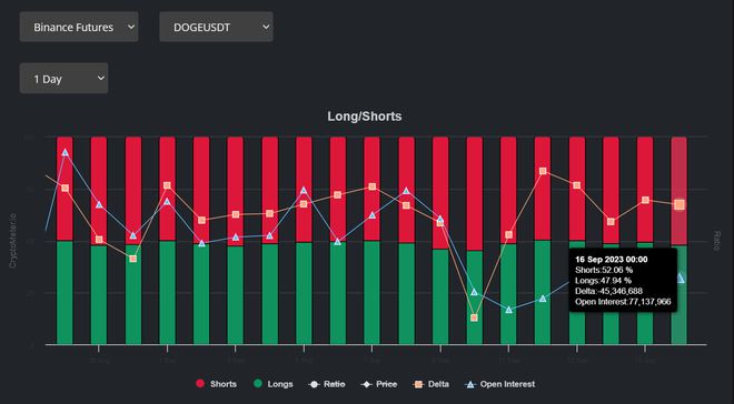 期货市场数据证实了现货市场的看跌压力。这三天,有更多玩家针对DOGE做空。这意味着他们预计未来会进一步下跌。