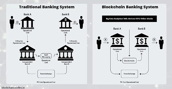 如今,烘焙行业面临着另一个问题——即缺乏最新的技术进步。许多银行仍然依赖旧系统,这些系统无法提供与更现代的替代方案相同水平的服务。由于审批流程缓慢和等待时间长,他们还很难吸引客户,这可能会赶走潜在客户。此外,还需要不同的渠道来让客户更轻松地与银行联系。这些可以是基于 Web 的应用程序或可以集成到第三方应用程序和服务中的开放 API。这些解决方案提供了改进的用户体验功能,例如个性化、人工智能驱动的分析和自动化,使消费者能够更轻松地进行银行业务。 什么是区块链? 区块链是一项革命性的技术,它使用去中心化的数字账本来存储数据。简而言之,它是一个不断增长的区块链,由加密协议保护并通过点对点网络进行验证。每个区块都包含一组交易数据,这些数据以永久且防篡改的方式存储。 与由中央实体管理的传统数据库不同,区块链的数据结构分布在节点网络中。每个节点都有数据的副本,区块链的任何更新在添加到分类账之前都会经过网络验证。这种去中心化的结构确保了没有中心故障点,使其更加安全并且能够抵抗攻击。 区块链的显着特征之一是不变性。一旦一个区块被添加到链上,未经整个网络的共识,它就不能被更改或删除。因此,区块链上存储的所有交易都有可靠且不可更改的记录。此外,区块链是去中心化的,这意味着不需要中介机构或第三方来验证交易,从而减少了资产交换费用和处理时间。 区块链的另一个关键方面是其透明度。网络上的所有各方都可以查看交易,从而可以轻松追踪资产的历史记录。然而,这种透明度并不以匿名为代价。用户可以保持匿名,同时仍然参与区块链上的交易。 区块链技术不仅限于金融领域,在其他行业也有各种用例。例如,供应链管理、投票系统和医疗保健都将从区块链的去中心化和安全特性中受益。 为了确保安全,区块链应用了哈希函数、公钥和私钥、智能合约和数字签名。哈希函数对块中的数据进行加密,而公钥和私钥用于验证交易。智能合约自动执行区块链内预定义的规则和条件,确保网络高效运行。另一方面,数字签名通过允许交易验证和快速识别欺诈活动来提供额外的安全层。 为什么区块链在银行业中很重要? 近年来,区块链技术受到了广泛关注,它正在以各种方式改变银行业,这已不是什么秘密。其独特的特性,例如更高的安全性、成本效率、更快的交易和数据完整性,使其成为银行业的游戏规则改变者。 提高安全性并减少欺诈活动 区块链技术在银行服务中的实施显着提高了安全性并减少了欺诈活动。提高安全性的主要原因之一是消除了单点故障。