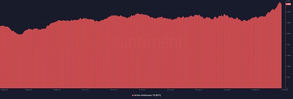 然而,最大幅度的激增发生在 9 月 15 日,当时地址数量超过 768,000 个。截至撰写本文时,该数字已略有下降至约 666,000 人。