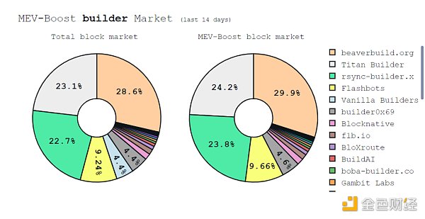 尽管目前协议级别 PBS 尚未纳入以太坊主网,但是我们大致通过了解 Mev-Boost PBS 当前的市场分布,也能大致了解未来主网的一个趋势走向,mevboost.pics 的数据统计如下: