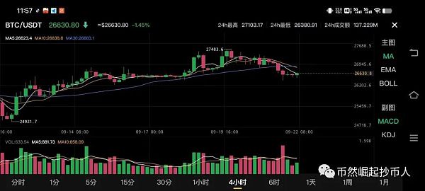 围绕比特币btc26200-26400附近进场做多,目前27200附近止盈出局