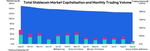 CCData 的一份新报告显示,9 月份稳定币市值跌至 1240 亿美元,为 2021 年 8 月以来的最低水平。此外,截至 9 月 18 日,稳定币在整个加密货币市值中的主导地位下降了 0.2% 至 11.6%。