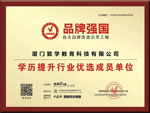 致学教育选入品牌强国“学历提升行业优选成员单位”