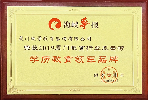 近日由福建日报指导、海峡导报主办的厦门教育行业风云榜活动在厦门圆满闭幕,致学教育被评选为学历教育领军品牌。