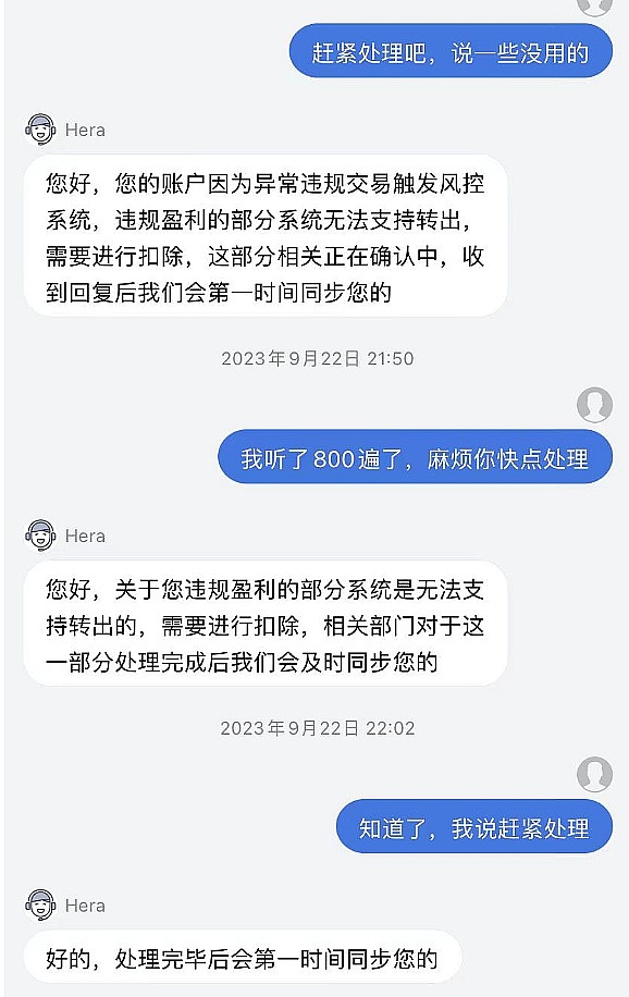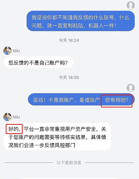 联系客服一直说请等待,已经反馈,触发风控(实质就是盈利大于一定数额了),几天过后还是那些话,后来才知道全是机器人回复,不论你说什么都那样回答,根本不予解决问题。