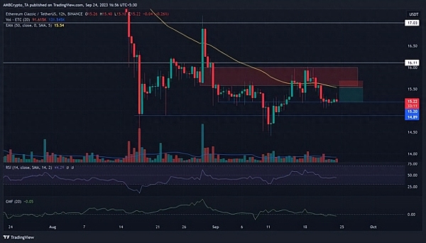 整个 9 月份,以太坊经典 [ETC] 的价格一直难以突破 16 美元,这促使卖家将其作为重新进入市场的切入点。最近从 14.4 美元反弹至 16.3 美元,使买家能够获得 +10% 的收益。同样,在 16 美元关口反转至 15.20 美元后,卖家获得了 5% 的涨幅。