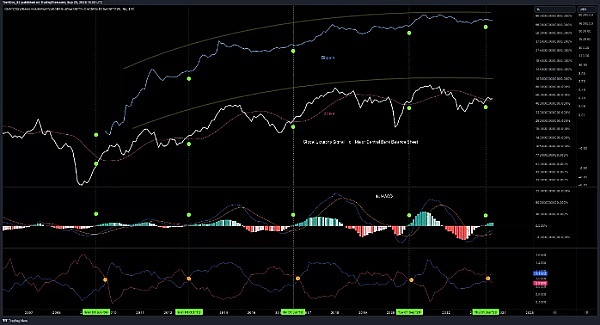 分析师分享的流动性信号试图通过比较美元指数(DXY)与中国10年期债券(CN10Y)来理解全球流动性周期。