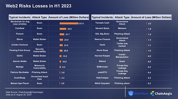Web2类型的安全事件也呈现高速增长的趋势,这类钓鱼攻击、社会工程学等黑客攻击手法在Web2时代已非常成熟,Web3项目方和机构容易忽视,这类安全事件通常会窃取钱包账户授权或直接窃取助记词、私钥,盗取用户加密资产。