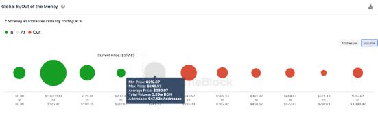 如下图所示,647,420个地址以230美元的均价购买了369万个BCH。如果他们提前获利,可能会构成重大障碍。