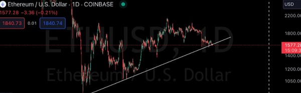 以太坊交易价格为 1,585 美元,在过去 24 小时内下跌 0.5%。