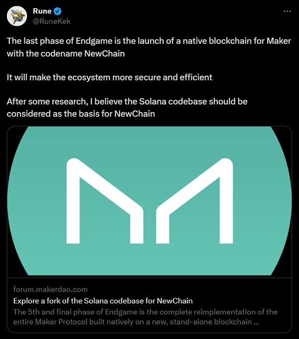 大多数人只是认为这将是一个第二层 (L2) 扩展解决方案,这就是为什么当 Maker 联合创始人 Rune Christensen 在 9 月 1 日呼吁探索分叉 Solana 作为 NewChain 的基础时,许多人感到惊讶。