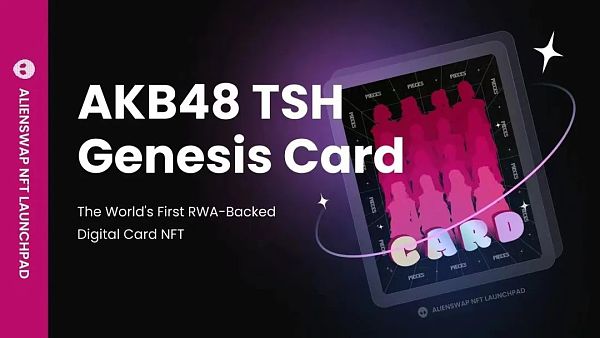 AlienSwap 在 RWA 和 NFT 结合的探索中抢先迈出了第一步,7月份,AlienSwap 在 Launchoad 中推出上线了第一个 NFT:AKB 48 Team SH Genesis Card。这是全球首个女子偶像团体组合卡牌 NFT 系列。通过持有 NFT,能够获得偶像团体的收益分成,以及一些稀有的现实世界权益。