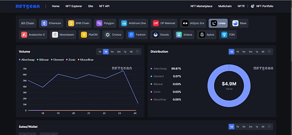 AlienSwap 最初部署在 Ethereum 主网,目前已经扩展到了 Linea、Base,并且支持 Scroll Alpha,多链部署的成效也开始逐步呈现。