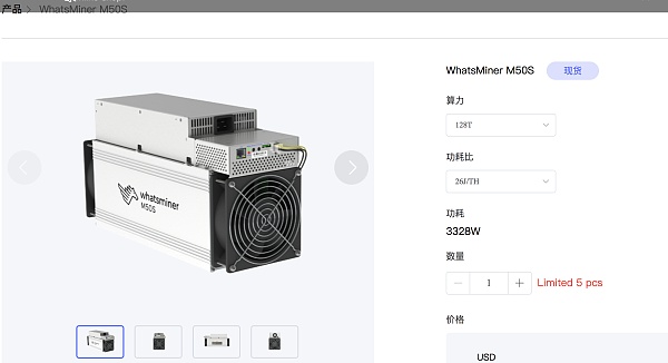 M50S是一款由比特币矿机制造商MicroBT旗下品牌Whatsminer推出的生产的比特币(Bitcoin)矿机。它是一种专为挖掘比特币而设计的硬件设备,使用SHA-256算法进行挖矿。据Whatsminer官网数据显示,WhatsMiner M50 系列,M50S 采用三星 5nm 芯片,算力为128T,能效比26J/T,功率为 3328 瓦。