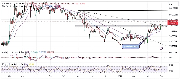 制造商价格再上涨 5.5%,交易至略低于 1,500 美元阻力位/支撑位。该协议效用的飙升证实了上升趋势。