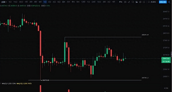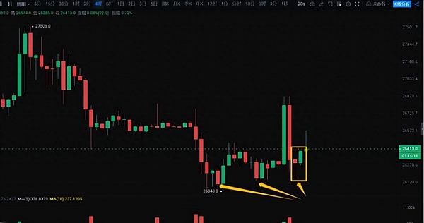 小级别行情走势很快,后续能不能有效突破,还需要我们多关注上方26800美金的压力位置。